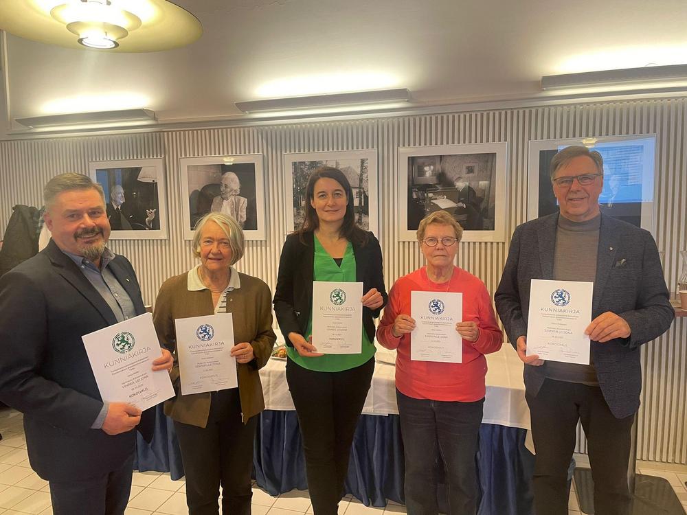 Kokouksessa luovutettiin myös ansiomerkkejä tunnustuksena  ansioista järjestötoiminnassa. Kokoomuksen vihreän leijonan saivat Vesa Müller, Heidi Perkiö, Riitta Saarnivuo, Ville Sihvo ja Sari Sillanmäki-Kuokkanen. Sinisen ansiomerkin saivat Anni Fast, Tarja Helameri, Paavo Peltosaari, Mirja Vakkuri ja Jere Willberg.